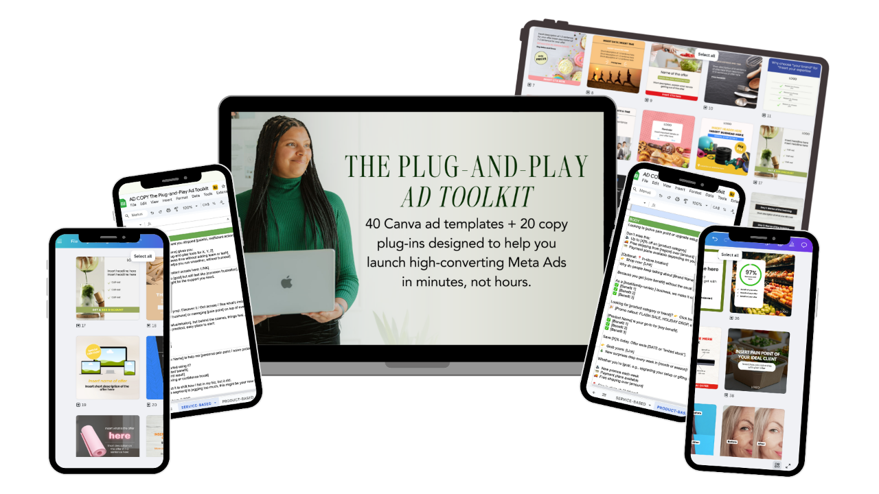 ✔️ 40 customizable Canva ad templates (Pro version recommended for full access)